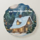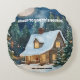 Gemütliche Weihnachtsfeier Hütte mit Schnee bedeck Rundes Kissen