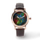Genesis Blue Abstrakt Art Perfect Square Brown Leather Watch