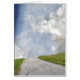 Ein hellblauer Himmel, grüne Hügel und eine Landstraße, die mit "Genießen Sie die Reise" umrahmt ist, ist der perfekte Gruß für einen geliebten Menschen, der gerade erst beginnt oder bereits unterwegs ist