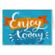 Genießen Sie heute - positives Zitat, handgeschriebene Kalligraphie auf blauem Schmutzhintergrund und orange Band. Vector Typografieentwurf für Karten, T - Shirt, Plakate und Sozialmediuminhalt. | Bigstock® - alle Rechte vorbehalten.