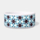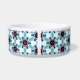 Komplexe geometrische Muster wiederholen sich in einer symmetrischen Formation in Blau, Schwarz und Weiß. Das Design konzentriert sich auf zirkuläre Motive, die einen visuell ansprechenden und ausgewogenen Effekt erzeugen sollen.