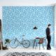 Weiße Verzierungsmuster, antikes Design auf himmelblauem Hintergrund - ein elegantes geometrisches Vintages Muster.