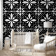 Eine stilvolle moderne, geometrisch abstrakte Schwarz-Weiß-Form und vierblättrige Schale und Tapeten-Tapeten-Wandbearbeitung, um Ihr Bad, Ihre Küche, oder jedes Zimmer zu modernisieren. Ideal, wenn Sie in einer Mietwohnung wohnen, die Ihren persönlichen Stil und Ihre Touch des Designs benötigt, um Dinge zum Pop zu machen. Tapete mit Schale und Stock ist einer der besten Hacks für Wohnungsbauer, um ihnen mehr Kontrolle über ihre Wohngestaltung zu geben! Gehen Sie mit Mustern und Farben wild. Kommt in glatt und strukturiert. Die Textur für holprige, strukturierte Wände, glatt oder strukturiert für glatte Wände.