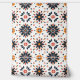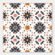 Dieses Kunstwerk weist ein symmetrisches Muster stilisierter Blumenmotive auf, die in einem geometrischen Layout kompakt angeordnet sind. Das Design dominiert durch fette Formen und scharfe Winkel, mit einer Farbpalette aus tiefer Marine, lebendiger Orange und reichhaltigem rotem Set vor einem weißen Hintergrund. Die Wiederholung der Blumenelemente und die präzise, geordnete Anordnung schaffen Harmonie und Ausgeglichenheit, während die kontrastierenden Farben der Komposition Dynamik und Energie verleihen. Das Gesamtbild ist modern und zeitlos, kombiniert Elemente traditioneller Blumendesigns mit zeitgenössischer geometrischer Präzision.