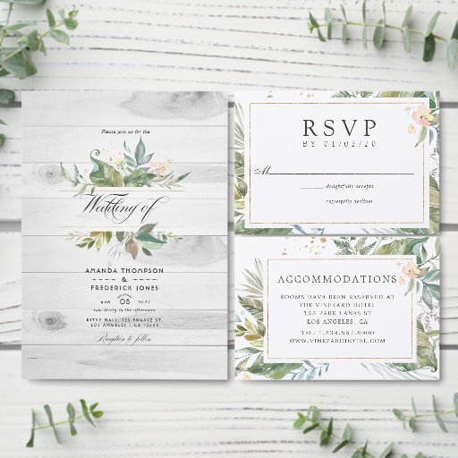Blumengrün im Wasser Hochzeitskarten in Pastelltönen mit goldgeometrischem Rahmen, die auf Ihre Veranstaltungsspezifikationen zugeschnitten sind.