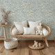 Geometrische LüfterMuscheln in Soft Blue und Gold Tapete