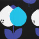 Geometrische Tulips Blau und Schwarz Tapete
