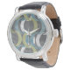 Uhr, Vintage Männeruhr mit schwarzem Lederarmband