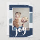 Das moderne Design der Farbblöcke in den winterlichen Dim-Blau-Tönen enthält eine handgeschriebene Botschaft für die Freude an dieser modernen Urlaubsfotokarte.