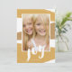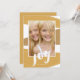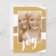 Das moderne Design der Farbblöcke in festlichen Goldtönen enthält eine handgeschriebene Botschaft für die Freude an dieser modernen Urlaubskarte.