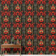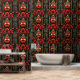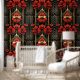 Geometrischer Deko aus Gold und Roter Flora Tapete