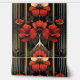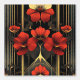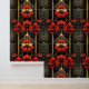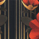 Erleben Sie das kühne Art Deco Drama mit diesem einzigartigen Muster. Die geometrische Form des Goldes strahlt nach oben und nach außen aus und verzweigt sich in drei verschiedene Bereiche, die jeweils mit lebendigen Blume in Rot und Gold im Art-Déco-Stil geschmückt sind. Eine auffallende rot-goldene Blume steht ebenfalls im Mittelpunkt dieses strahlenden Motivs mit ähnlichen Blumenelementen, die beide untere Ecken zieren. Dünne, gerade goldene Linien steigen nach oben und verstärken die dynamische Struktur vor einer raffinierten Mischung aus schwarz und grau im Hintergrund. Dieses Design ist eine faszinierende Mischung aus natürlicher Inspiration und ikonischer Art-Déco-Geometrie, perfekt für eine glamouröse Aussage.