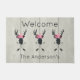 Eine Begrüßungstür personalisiert mit einem Familiennamen oder einem anderen Text mit einem schwarzen Hirschkopf aus geometrischen Linien und einer rosa Blumenkrone und gekreuzten Pfeilen darunter. Rustikales und trendiges Design. Der Hintergrund ist ein digitales Bild von sanft beigefarbenen Holzplanken.