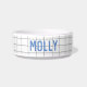 Individuell anpassbare Tierschale in einem modernen geometrischen Rastermuster in einem klassischen Blau-, Weiß- und Schwarz-Farbkrieg. Personalisiert zu Ihren Anforderungen, um ein fabelhaftes Geschenk und niedliches Zubehör zu gewährleisten. Ideal für den Haustierbesitzer in Ihrem Leben. Passende Accessoires für Haustiere sind erhältlich.