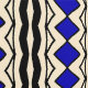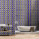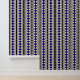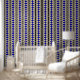 Die Wände werden durch eine gewagte geometrische Tapete mit einem auffallenden blauen, schwarzen und beigen Muster erhellt. Inspiriert durch orientalische Motive mit moderner Drehung, ist es ideal, um Kinderzimmern, Wohnzimmern oder kreativen Räumen Charakter zu verleihen. Das rhythmisch-vertikale Design erhöht die Höhe und schafft eine stilvolle Aussage, die Tradition mit zeitgemäßem Innendesign verbindet.