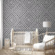 Dieses Diamant-Tapete weist ein geometrisches Muster in Grau, Schwarz und Weiß auf. Das Zimmer war sehr sauber, das Kinderzimmer war sehr gut und das Zimmer war sehr sauber. Die passende Einrichtung.
