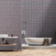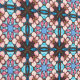 Diese geometrische Tapete zeichnet sich durch einen kleinen Druck von braunen symmetrischen Formen aus, die von rosa Blume hervorgehoben werden. Der Druck weist Details auf, die an Buntglas erinnern. Dieses Muster kann zwar an den Wänden verwendet werden, ist aber Teil einer Sammlung von Abziehbildern, die speziell für die Auskleidung von Schubladen, die Rückseite von Regalen und andere Möbelflächen hergestellt wurden.