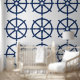 Verbessern Sie Ihren Platz mit unserem geometrischen Shape Nautical Coastal Navy Blue Ship Wheel Wallpaper. Mit einem stilvollen Muster an Ankern und geometrischen Formen in einer raffinierten marineblauen Palette verleiht dieses Tapete jedem Zimmer ein modernes Küstenstreifen. Ideal, um Ihrem Wohnzimmer, Schlafzimmer, Büro oder Kinderzimmer eine Touch nautischen Charmes zu verleihen. Es verbindet modernes Design mit zeitlosen maritimen Elementen.