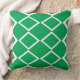 Green Diamond Triangle geometrisches Pattern Kissen. Grünes Rautendreieck auf weißem Hintergrund. Modernes geometrisches Muster für Ideen der grünen weißen Wohngestaltung.