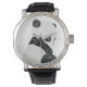 Uhr, Vintage Männeruhr mit schwarzem Lederarmband