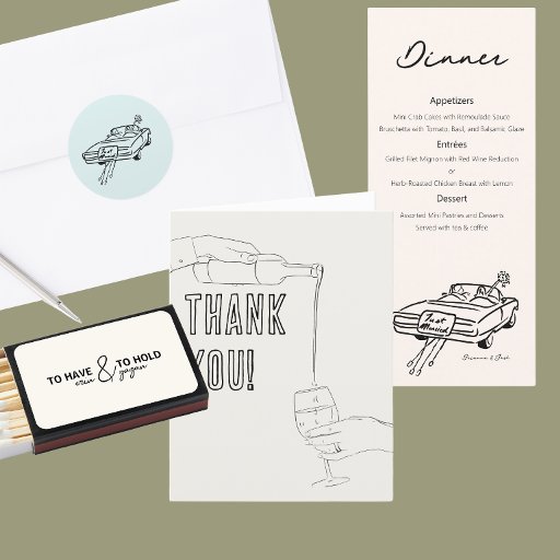 sketchy line drawings wedding suite Designt von Erin Wolf