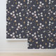 Ein nahtloses Muster mit zarten botanischen Elementen auf einem tiefen, gedämpften Hintergrund. Weiche, pastellfarbene Blume und Blätter schaffen einen sanften, eleganten Kontrast zur dunklen Kulisse, der ein Gefühl von Ruhe und zeitloser Schönheit hervorruft.