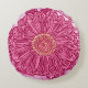 Rundkissen in einem Druck einer Gerbera-Disy, auf der Grundlage eines Fotografierens, digital transformiert und handgetönt - Fuchsienrosa mit tiefem Maron / Bordeaux und Muschel pink