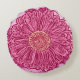 Gerbera Daisy Block Print, Maroon & Pastel Pink Rundes Kissen