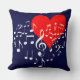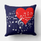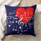 Große Silhouette von Noten und Klappen in Herzform, ein kleines Bild eines roten Herzens hinter den schwarzen Noten. Ein romantisches, dunkelblaues Kissen für jeden. Vergessen Sie nicht, einen anderen Stil und eine andere Größe des Kopfkissens zu wählen, nutzen Sie die Schaltfläche Anpassen, um die Farbe des Hintergrunds zu ändern und das Design entsprechend Ihren Bedürfnissen anzupassen.