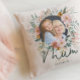 Mütter Tag Foto rosa mädchenhaften Aquarell Blumenwein, Mütter Tag oder Geburtstag Kissen Design. Ein modernes Design mit Skriptmumtext und fett formatierter Grafik. Ändern Sie die Farbe, um sie anzupassen. Teil einer Sammlung.