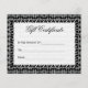 Geschenkgutschein Schwarz-weißes Stammmuster. Anpassen mit Ihrem eigenen Text, ändern Sie die Schriftart und Wörter. Personalisieren Sie Ihre Bestellung mit Ihrem Geschäfts- oder Firmennamen. Eine tolle Möglichkeit, neue Kunden zu gewinnen. Das ist ein tolles Geschenk für diese besondere Anlass.