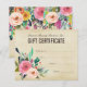Trendy Designer Blumen Geschenkgutscheine Vorlage für Sie auszufüllen mit Ihrem eigenen Text und Firmenlogo. Ideal für Friseursalons, Kosmetologen, Modedesigner, Ladenbesitzer, Wellness-Center und alle anderen Unternehmen, die ihre eigenen Geschenkgutscheine will. Fügen Sie Ihr eigenes Firmenlogo auf die Rückseite, damit es besonders beruflich und elegant aussieht. Einfach den Beispieltext mit dem eigenen eintippen und Ihr Firmenlogo hochladen, um das extra berufliche Finish zu erhalten! Wird so aussehen, als hätten Sie einen persönlichen Business-Grafiker eingestellt, aber Sie haben es nicht getan - und müssen nur einen Bruchteil der Kosten für diese druckbaren Vollfarbengeschenkgutscheine tragen Sie Ihre eigenen Geschäftsdetails über den Vorlagentext. Alle Texte können beliebig angepasst oder verschoben werden. Wenn Sie den Text weiter verschieben, neu formatieren, hinzufügen oder ändern möchten, klicken Sie einfach auf den Button "Anpassen". Viele andere beliebte Geschenkgutscheine/Geschenkgutscheine-Kartendesigns sind in meinem Zazzle-Shop erhältlich. Wenn Sie speziell angefertigte Designs oder modifizierte Designs speziell für Ihre Bedürfnisse haben, dann kontaktieren Sie mich einfach per zazzle mail.