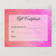 Geschenk Zertifikat rosa Orange Design. Marmortextur Hintergrund. Anpassen oder Personalisieren Sie mit Ihren eigenen Wörtern und Texten.