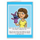 Eine Glückwunschkarte mit einem Cartoon von Jojo Kneebone AKA MuffinPuffART! einer lächelnden Frau mit braunen, lockigen Haaren, die eine lila Monsterhandpuppe hält, und den Worten: "Sally hat nie erfahren, warum Geschwindigkeit verabredet einfach nicht für sie funktionierte. Schließlich ließ sie nur, dass Herr Boppet all das Reden macht, und er hatte nur noch schöne Dinge über sie zu sagen!"