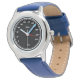 Kinderuhr aus Edelstahl mit blauem Lederarmband
