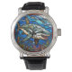 Uhr, Vintage Männeruhr mit schwarzem Lederarmband