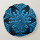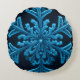 Gestreifte Eleganz: Intricate Blue Snowflake Desig Rundes Kissen