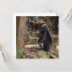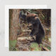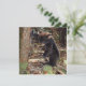 Malerei eines schwarzen Bärenkuchens, der sich gegen einen Baum lehnt, während er auf einem moosbedeckten Stumpf steht und für eine Blume greift.