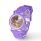 Uhr, Kinderuhr aus Edelstahluhr mit lila Lederarmband