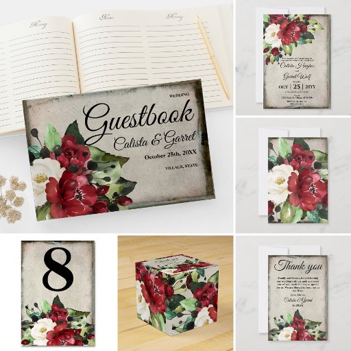 Elegant Red Floral Grunge Wedding StationeryDesignt von Amazing Beautiful Creative Designs