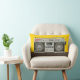Retro Boombox Kissen mit einem gelben Hintergrund.