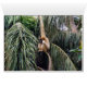 Von einem Baum mit ihrem Arm hängt eine weiße Frau Gibbon-Affe.