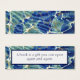 Ein abstraktes Batik-Design in Aqua und Lapis auf der einen Seite, und auf der anderen Seite wiederholt mit einem Fenster und den Worten: "Ein Buch ist ein Geschenk, das man immer wieder öffnen kann." Der Text ist eine veränderbare Vorlage, sodass Sie Ihre eigenen Wörter ausfüllen können, wenn Sie möchten! Denken Sie daran, den Text zu zentrieren, wenn Sie auf eine normale Visitenkarte verkleinern! Dieses Design ist auch in einer Vorlage für die Visitenkartengröße verfügbar.