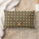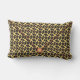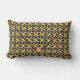 Das Originalwerk von ZoeSPEAK auf diesem Lumbar Kissen ist ein Muster, das im Stil eines Umschlagkupplungssacks gefertigt wurde. Die Tasche ist ein vergoldeter Gitterkäfig, gesäumt von einem dunkelblauen, seidigen Stoff mit einem subtilen Muster kreisförmiger Linien und Highlights in Blau, Rot und Grün. Es gibt winzige rote Bälle in den offenen Bereichen der Gitterarbeit. Die Klappe des Umschlags hat einen roten Rahmen und einen großen roten Kugelschreiber unter goldener Lattizität.