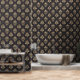 Dieses raffinierte Princesscore-Muster besticht durch verzierte, goldene Blumenmotive mit Set vor einem schwarzen Hintergrund aus Holzkohle, die eine Atmosphäre zeitlosen Luxus und aristokratischer Raffinesse ausstrahlen. Inspiriert durch klassische barocke Eleganz und Vintage Damast-Textilien, eignet sich dieses Design perfekt für luxuriöse Tapeten, edle Textilien und Schreibwaren. Seine Kontraste und die zarten Details schaffen ein majestätisches und dramatisches Ambiente, das sich für königliche Innenräume eignet.