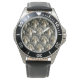 Herrenuhr aus Edelstahl mit schwarzem Lederarmband