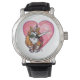 Uhr, Vintage Männeruhr mit schwarzem Lederarmband
