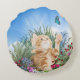 Ginger Kätzchen spielt mit Schmetterling Rundes Kissen