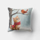 Ginger Kitty sieht sich einen Winter-Kardinal an Kissen