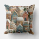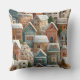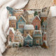 A hand drawn and painted town of gingerbread houses in muted red, orange, green and blue with touches of white. A charming Christmas season blanket. Look for the matching pillow in the same design.